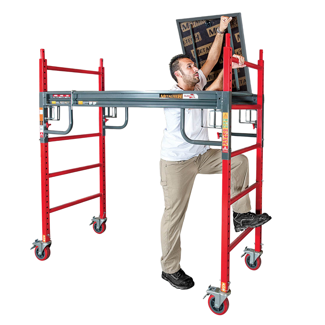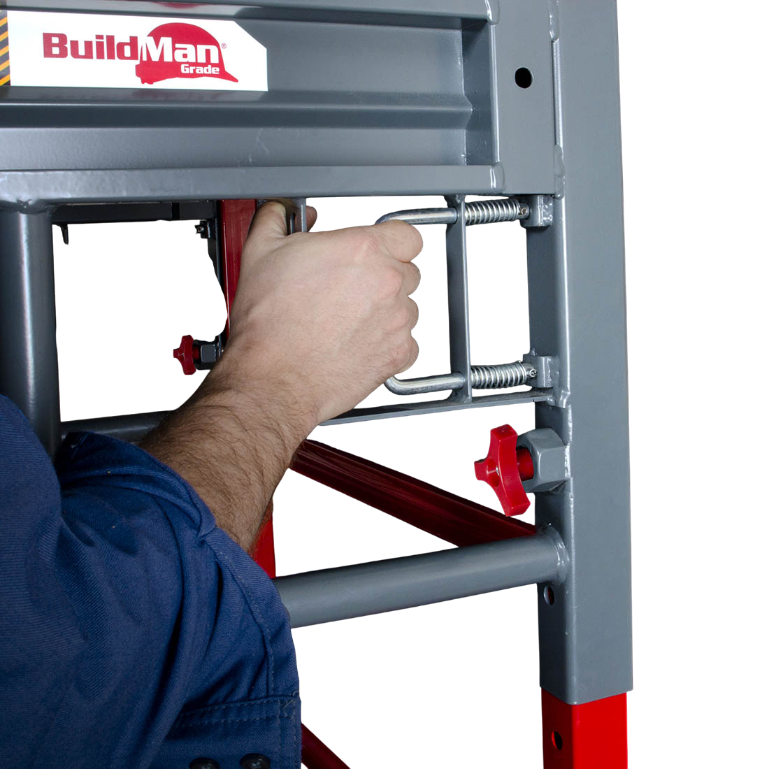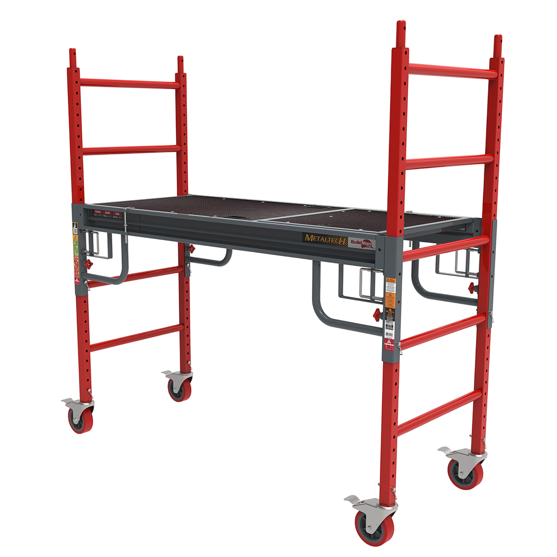 El andamio Buildman serie 6 modular de Metaltech en Acero es la solución ideal donde la comodidad para trabajar, practicidad en el transporte se combinan brindando una alternativa idónea para realizar actividades hasta alturas de 7 mts como alcance de trabajo ideal para reparaciones locativas, obra blanca, inspecciones o instalaciones en bodegas , locales comerciales , sector institucional y demás sitios que necesitan versatilidad en la ejecución, fabricado en tubería de acero calibre 16, ruedas de 15 cm con freno de servicio pesado , plataformas antideslizantes con compuerta y es configurable hasta 3 secciones , baranda con rodapiés y accesorios como estabilizadores laterales para trabajar de forma continua y segura, tiene una capacidad de carga hasta de 680 kg según sea su configuración , cuenta con certificaciones ANSI , CSA Y OSHA ,además de ir en línea con la resolución 4272 de 2021.