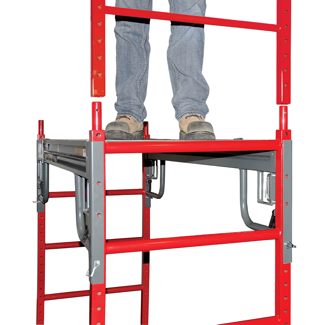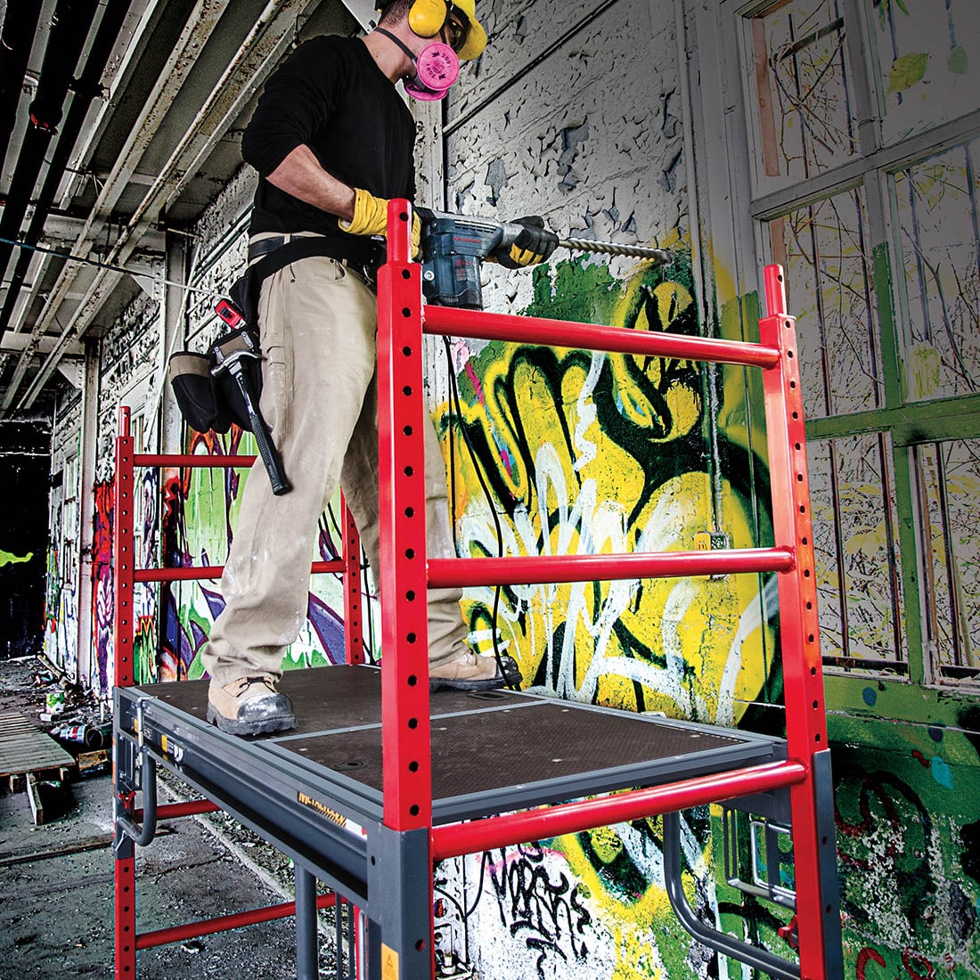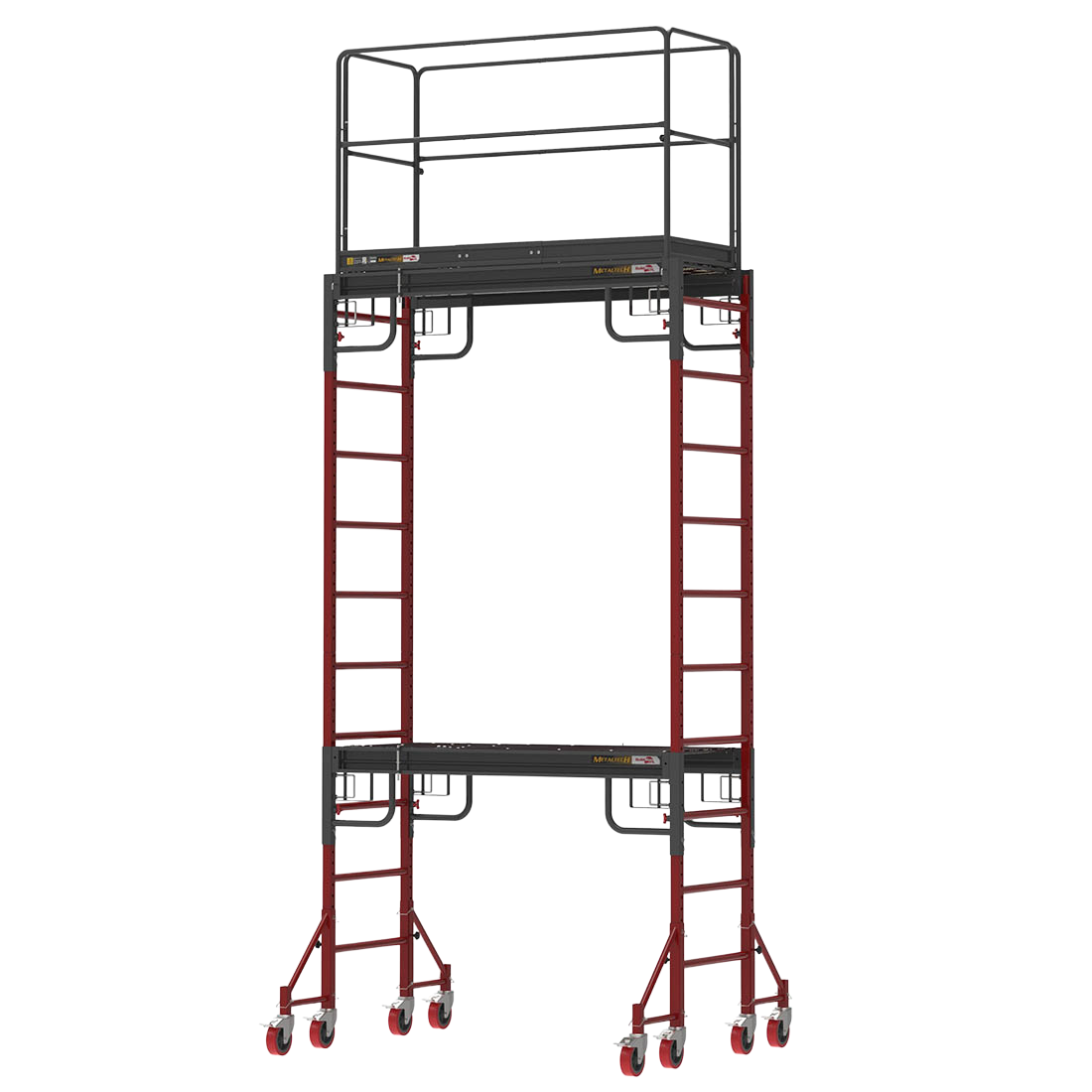 El andamio Buildman serie 6 modular de Metaltech en Acero es la solución ideal donde la comodidad para trabajar, practicidad en el transporte se combinan brindando una alternativa idónea para realizar actividades hasta alturas de 7 mts como alcance de trabajo ideal para reparaciones locativas, obra blanca, inspecciones o instalaciones en bodegas , locales comerciales , sector institucional y demás sitios que necesitan versatilidad en la ejecución, fabricado en tubería de acero calibre 16, ruedas de 15 cm con freno de servicio pesado , plataformas antideslizantes con compuerta y es configurable hasta 3 secciones , baranda con rodapiés y accesorios como estabilizadores laterales para trabajar de forma continua y segura, tiene una capacidad de carga hasta de 680 kg según sea su configuración , cuenta con certificaciones ANSI , CSA Y OSHA ,además de ir en línea con la resolución 4272 de 2021.