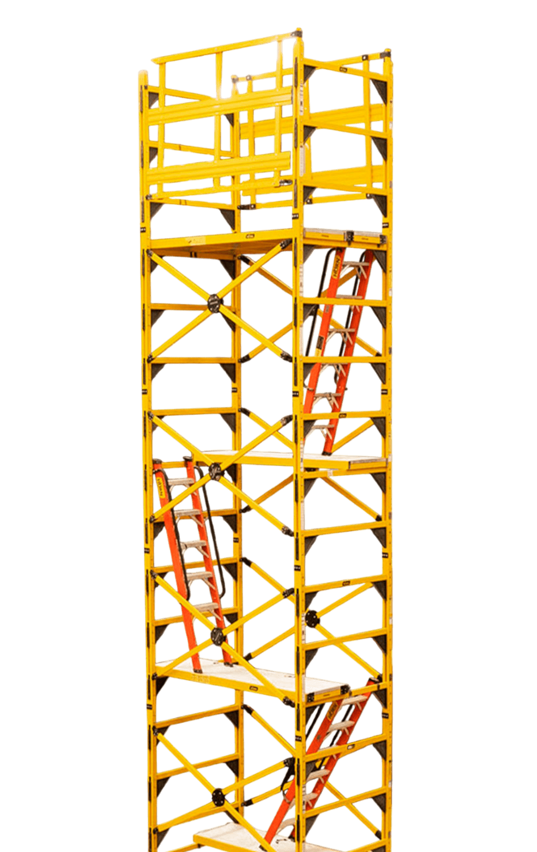 El andamio Dieléctrico Profesional , combina practicidad, eficiencia , durabilidad y versatilidad con seguridad, versus otros andamios de su categoría se caracteriza por su rápido armado , tiene un alcance de trabajo hasta de 16 metros, cuenta con sistemas totales de plataformas de trabajo, escaleras , base con ruedas o niveladores ,  su sistema modular facilita su operación en cualquier tipo de entorno exterior o interior ,fabricado en plástico reforzado con fibra de vidrio ( PRFV) , así que no solo es un elemento seguro para trabajo en alturas, sino que también lo es en ambientes con riesgo eléctrico o donde las condiciones climáticas sean desafiantes debido a su característica dieléctrica y alta resistencia  a la corrosión. Producto certificado y en línea con la resolución 4272 de 2021.