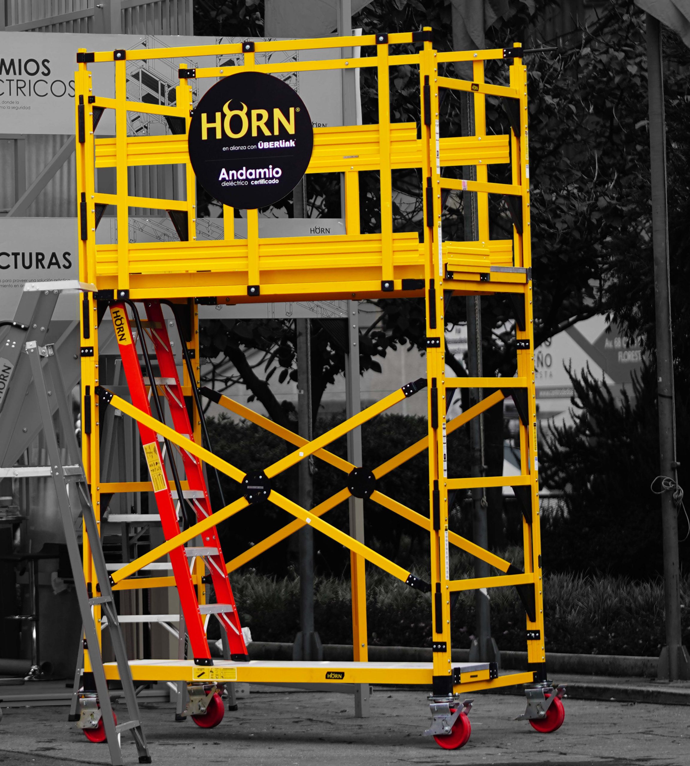 El andamio Dieléctrico Profesional , combina practicidad, eficiencia , durabilidad y versatilidad con seguridad, versus otros andamios de su categoría se caracteriza por su rápido armado , tiene un alcance de trabajo hasta de 16 metros, cuenta con sistemas totales de plataformas de trabajo, escaleras , base con ruedas o niveladores , su sistema modular facilita su operación en cualquier tipo de entorno exterior o interior ,fabricado en plástico reforzado con fibra de vidrio ( PRFV) , así que no solo es un elemento seguro para trabajo en alturas, sino que también lo es en ambientes con riesgo eléctrico o donde las condiciones climáticas sean desafiantes debido a su característica dieléctrica y alta resistencia a la corrosión. Producto certificado y en línea con la resolución 4272 de 2021.