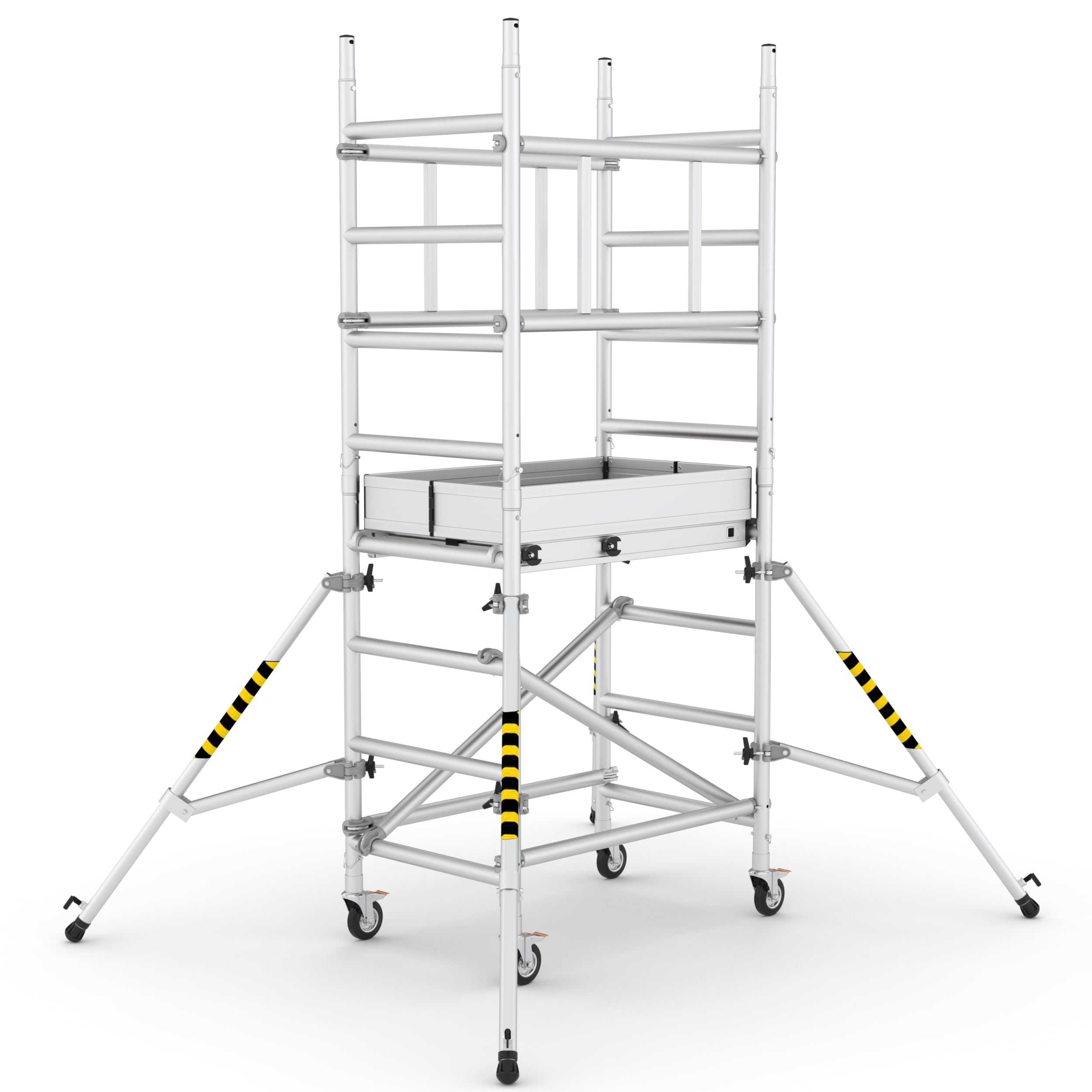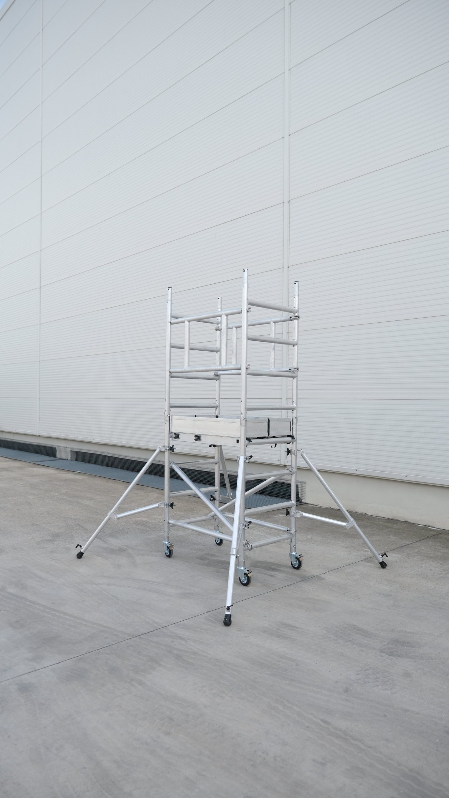 El andamio móvil Solo RAM ® en aluminio, es un equipo de nueva generación que revoluciona por completo su segmento, puede ser transportado, armado y operado por una sola persona, nunca fue tan fácil la puesta en marcha de trabajos que requieren autonomía, practicidad, maniobrabilidad y seguridad, se trata de un equipo compacto fabricado en aluminio de alta resistencia en una línea de producción con equipos de soldadura robotizada que garantiza una altísima calidad en todas sus líneas, su bajo peso y características móviles permiten usarlo tanto en interiores como en exteriores, Producto certificado bajo la Norma EN1004 del comité europeo de normalización , resistencia de 200 KG, equipo con superficie de trabajo cómoda y segura 113×73 cm que permite el uso prolongado , cuenta con ruedas con freno para movilizarlo fácilmente, permite su uso a varias alturas gracias a su estructura modular, trabaje siempre resguardado debido a sus barandas perimetrales, incluye rodapiés y estabilizadores telescópicos para mantener siempre la estabilidad.
