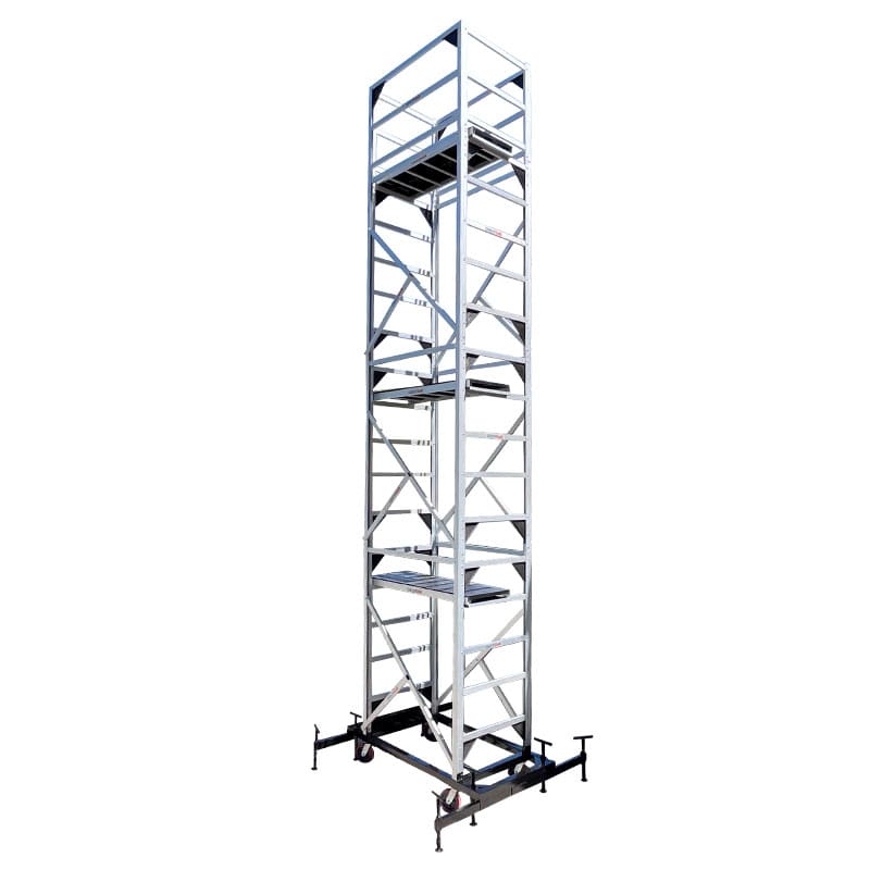 El andamio multipropósito en Aluminio es la herramienta ideal donde la comodidad para trabajar, practicidad en el transporte y diseño modular se combinan brindando una alternativa idónea para realizar actividades como reparaciones locativas, obra blanca, inspecciones o instalaciones en hogares, locales comerciales , sector institucional y demás sitios que necesitan versatilidad en la ejecución, fabricado en aluminio estructural, material de alta resistencia pero bajo peso, cuenta con plataforma de trabajo y ruedas para movilizar de manera más práctica, tiene una capacidad máxima de 300 kg a nivel de plataforma. Cumple norma NTC 1641 y NTC 1642 además de ir en línea con la resolución 4272 de 2021