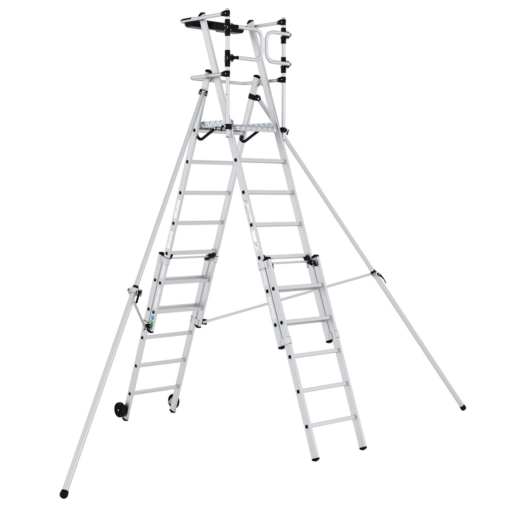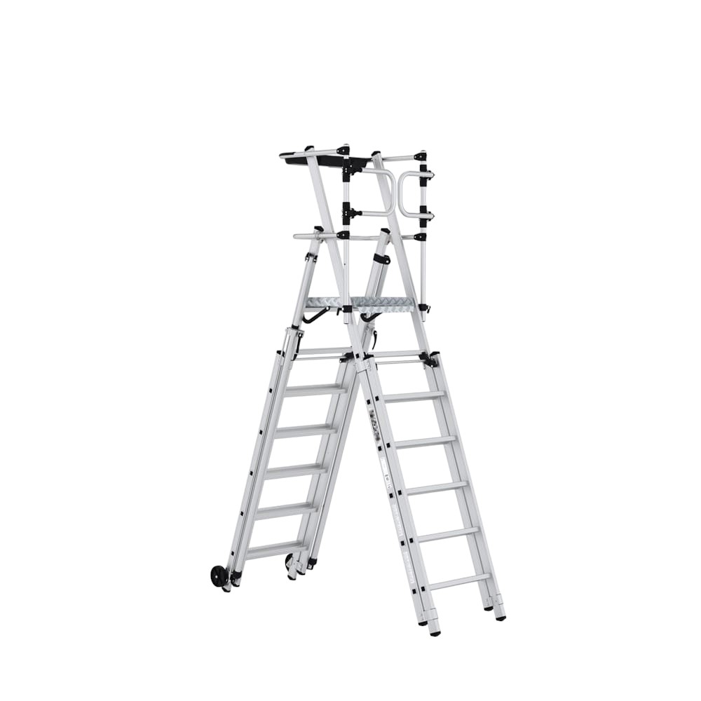El Andamio Unipersonal RAM ® en Aluminio es la combinación ideal de Seguridad, ligereza, resistencia y practicidad, nunca fue tan fácil la puesta en marcha de trabajos que requieren adaptabilidad de altura y maniobrabilidad, Producto certificado bajo la Norma EN131 del comité europeo de normalización producto de alta calidad y seguridad, resistencia 150 KG. Su función telescópica permite a los usuarios ajustar la altura de la plataforma e incluso a diferentes niveles del suelo haciéndolo un producto adaptable a las condiciones más exigentes, en el nivel superior cuenta con barandas abatibles de seguridad, practica bandeja portaherramientas y rodapié, estabilizadores telescópicos que salvaguardan al usuario de volcamientos accidentales , fabricado en aluminio de alta resistencia, brinda seguridad y peso liviano, cuenta con ruedas para fácil transporte y múltiples seguros a lo largo de su estructura para mantener la seguridad en cualquier tipo de actividad.