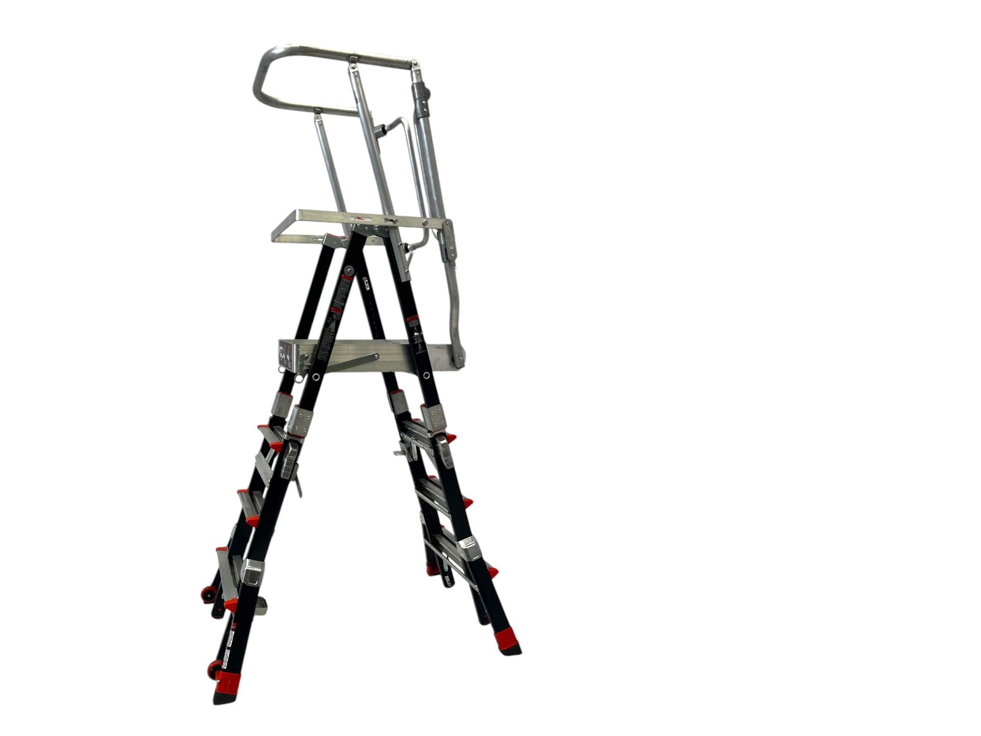 El Andamio Unipersonal Robusto 380 en Fibra de Vidrio es la combinación ideal de Seguridad, resistencia y practicidad, nunca fue tan fácil la puesta en marcha de trabajos que requieren adaptabilidad de altura y maniobrabilidad, su estructura es fabricada en PRFV / FVR FIBRA DE VIDRIO material no conductor de la electricidad, lo que hace que sea un equipo ideal para trabajar en ambientes que involucren contacto eléctrico (Capacidad Dielectrica Ca. 90 Kv – Ca 25 Kv) y condiciones muy exigentes de exposición a la intemperie o corrosión certificado bajo la Norma ANSI A 14.5, producto de alta calidad , seguridad y resistencia 170 KG. Su función telescópica permite a los usuarios ajustar la altura de la plataforma e incluso a diferentes niveles del suelo haciéndolo un producto adaptable a las condiciones más exigentes, en el nivel superior cuenta con barandas abatibles de seguridad, plataforma con rodapié, estabilizadores telescópicos que salvaguardan al usuario de volcamientos accidentales, cuenta con ruedas para fácil transporte y múltiples seguros a lo largo de su estructura para mantener la seguridad en cualquier tipo de actividad.