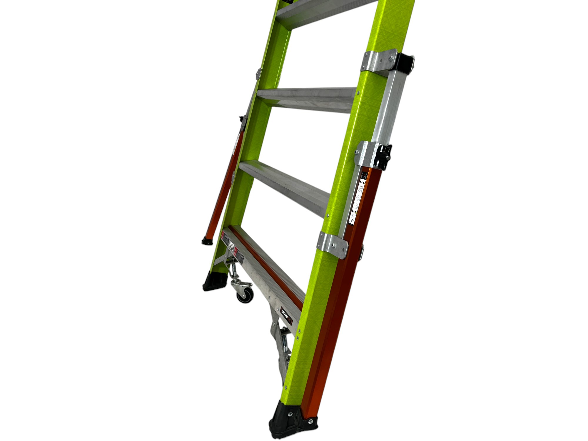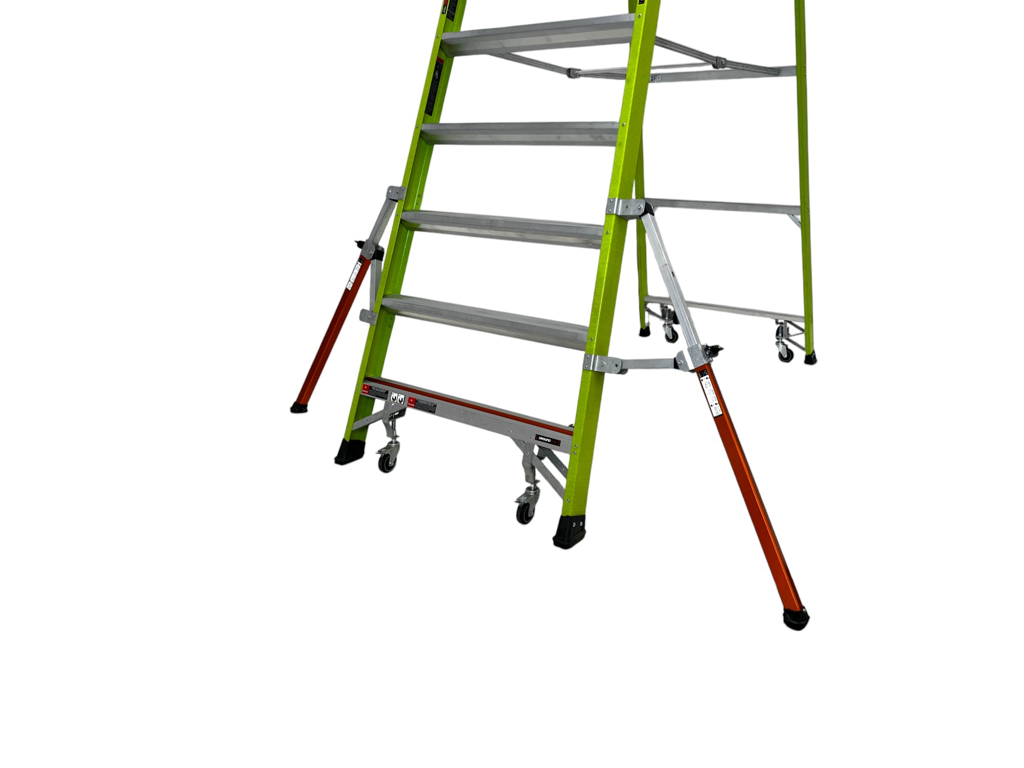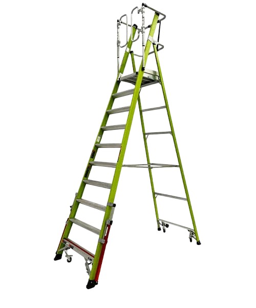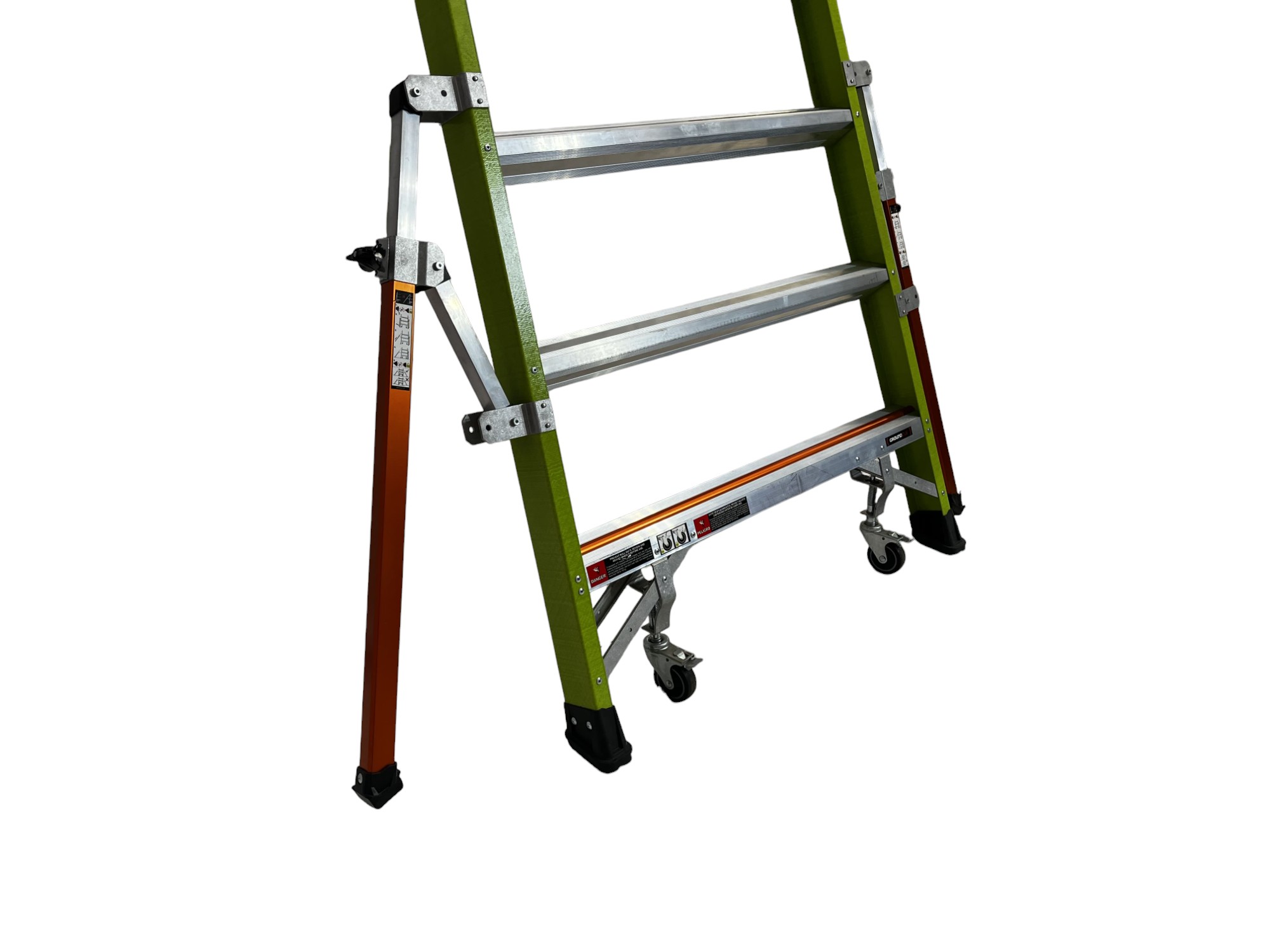 El Andamio Unipersonal Fijo 490 en Fibra de Vidrio es la combinación ideal de Seguridad, resistencia y practicidad, su plataforma confinada permite labores prolongadas con comodidad, su estructura es fabricada en PRFV / FVR FIBRA DE VIDRIO material no conductor de la electricidad, lo que hace que sea un equipo ideal para trabajar en ambientes que involucren contacto eléctrico (Capacidad Dielectrica Ca. 90 Kv – Ca 25 Kv) y condiciones muy exigentes de exposición a la intemperie o corrosión certificado bajo la Norma ANSI A 14.5, producto de alta calidad , seguridad y resistencia 170 KG., en el nivel superior cuenta con barandas abatibles de seguridad, plataforma con rodapié, estabilizadores abatibles que salvaguardan al usuario de volcamientos accidentales, cuenta con ruedas para fácil transporte y múltiples seguros a lo largo de su estructura para mantener la seguridad en cualquier tipo de actividad.