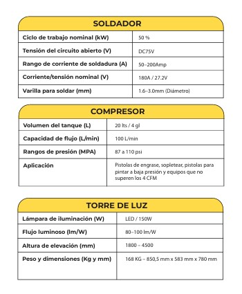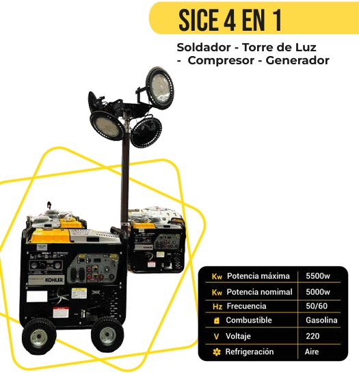 SICE 4 EN 1 SOLDADOR GENERADOR COMPRESOR Y TORRE DE ILUMINACION